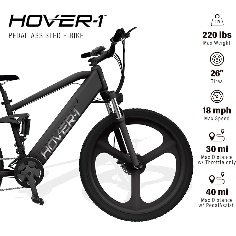 Hover-1 Instinct Electric Bike with 350W Motor, 18 mph Max Speed, 26” Tires